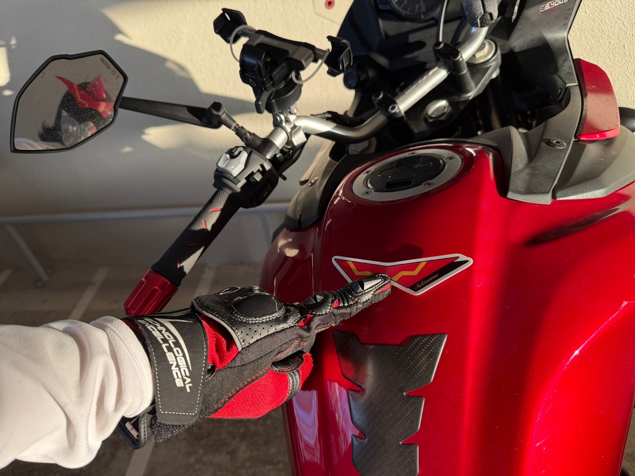 ご覧ください、メーカーの名前を上から張るだけで完全に消し去れ、普段使っているキャリーケース、フェンダー、タンク、スクリーンなど、縦が細く横長なので、まるでメーカーの純正ロゴのように違和感なく張る事ができます。