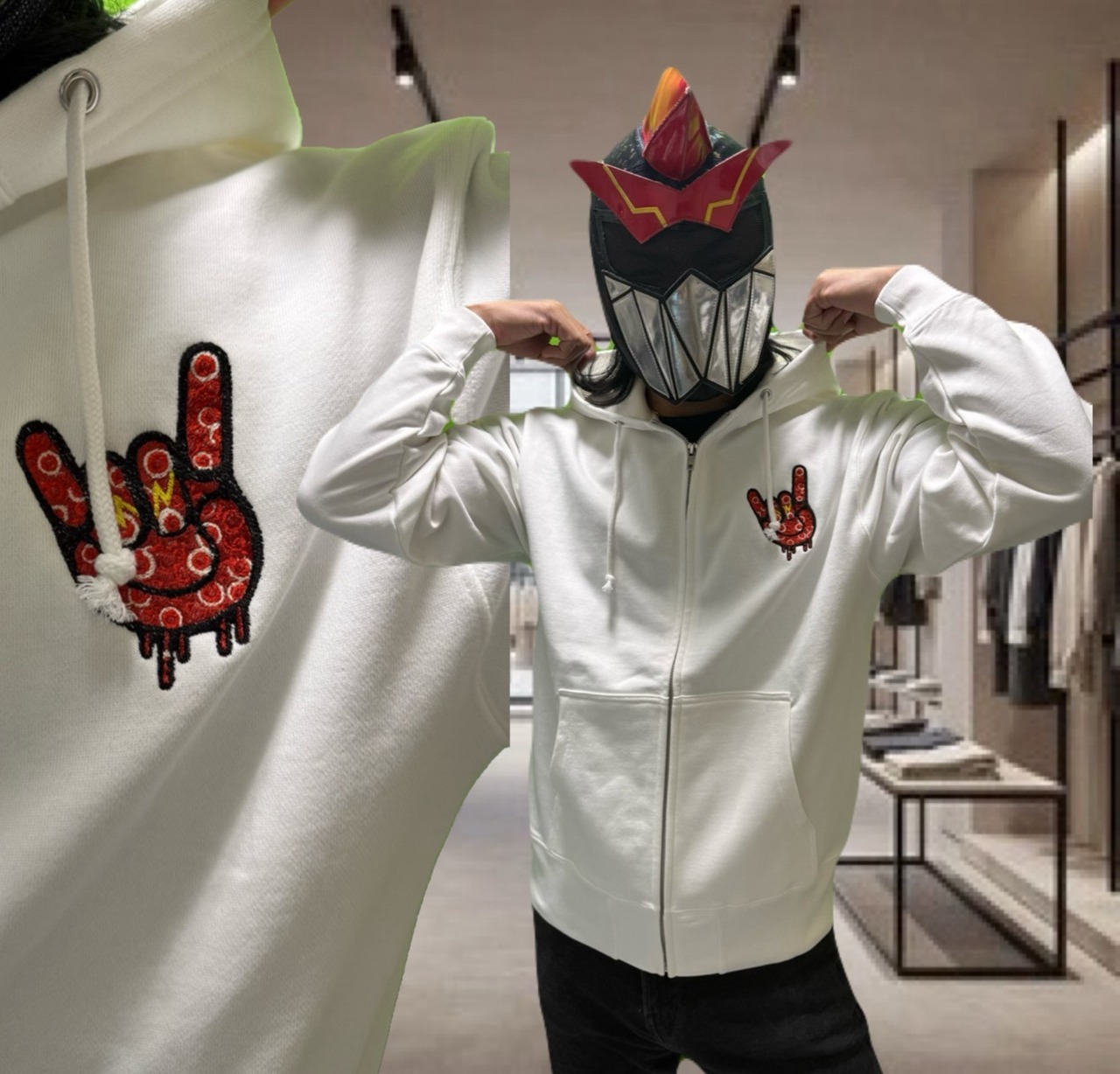 ※サキヌマーが着てるのはサンプルなので完成品は少し変わる可能性があります。写真の方が正確なデザインです